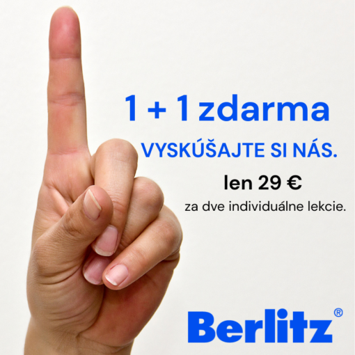 Najúspešnejšia metóda, pri ktorej sú lekcie vedené výlučne v cieľovom jazyku od prvej hodiny a každá aktivita je prispôsobená na mieru vašim potrebám. Jazyk sa učíte v reálnych životných situáciách. Po úspešnom ukončení kurzu dostávate svetovo uznávaný BERLITZ certifikát.